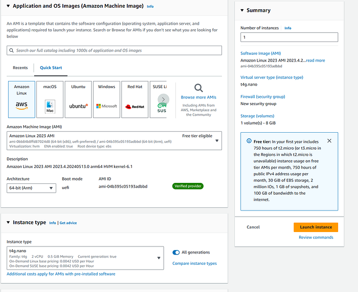 - Type d’instance (ex. t2.micro free tier ou t4g.nano ~0,10 $/jour).