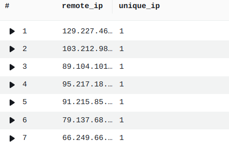 | stats count_distinct(remote_ip) as unique_ip by remote_ip