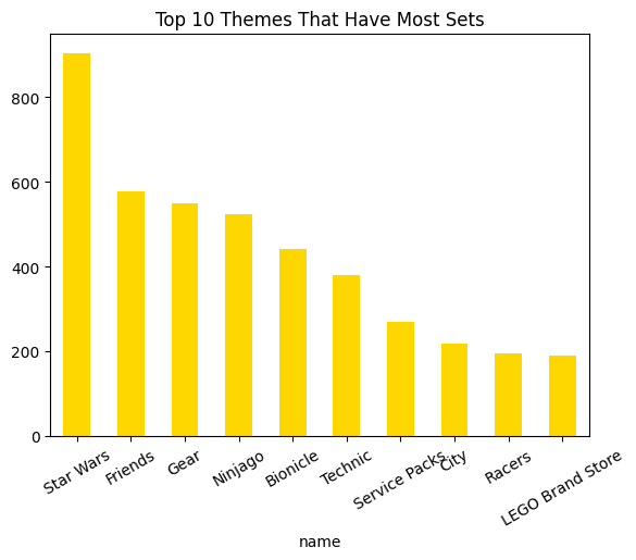 plt.title(“Top 10 Themes That Have Most Sets”)