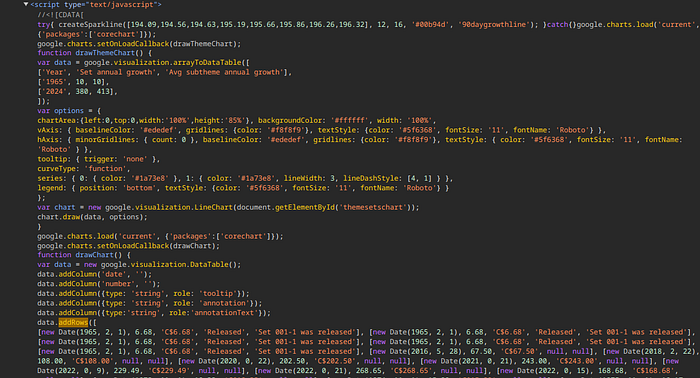 Pour l’historique et les prix, j’ai développé un scraper (Playwright, asyncio, pydantic, aiohttp). Les données Rebrickable ne couvraient pas l’historique de prix voulu ; BrickEconomy fournit détails et prix historiques sur les sets. Le scraper automatise la collecte pour alimenter l’analyse.