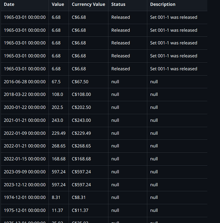 df_0011.rename(columns={‘Currency Value’: ‘USD Value’, ‘Description’: ‘Set Description’}, inplace=True)