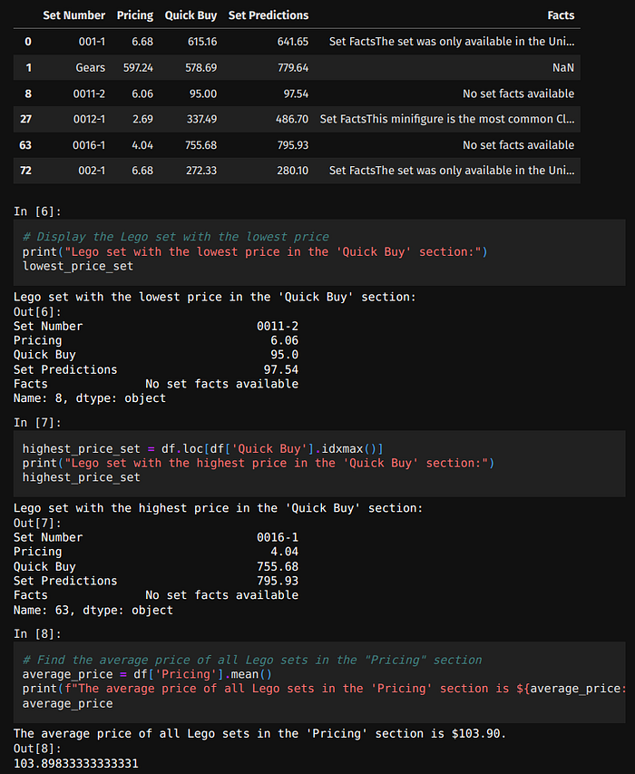lowest_price_set = df.loc[df[‘Quick Buy’].idxmin()]