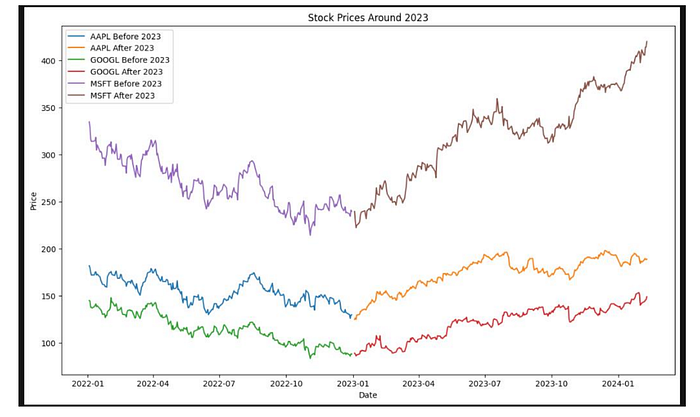 last_train_close = prices_before_january_2023[‘Close’].iloc[-1]